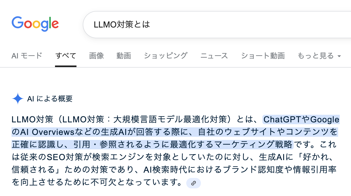 LLMO対策(LLMO対策:大規模言語モデル最適化対策)とは、ChatGPTやGoogleのAI Overviewsなどの生成AIが回答する際に、ウェブサイトやコンテンツを正確に認識し、引用・参照してもらえるように最適化するマーケティング戦略です。